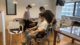 思っていたよりすんなりと会場へ行くことができ、会場では自衛隊の方々が階段を手助け頂き大変助かり、無事到着しました。